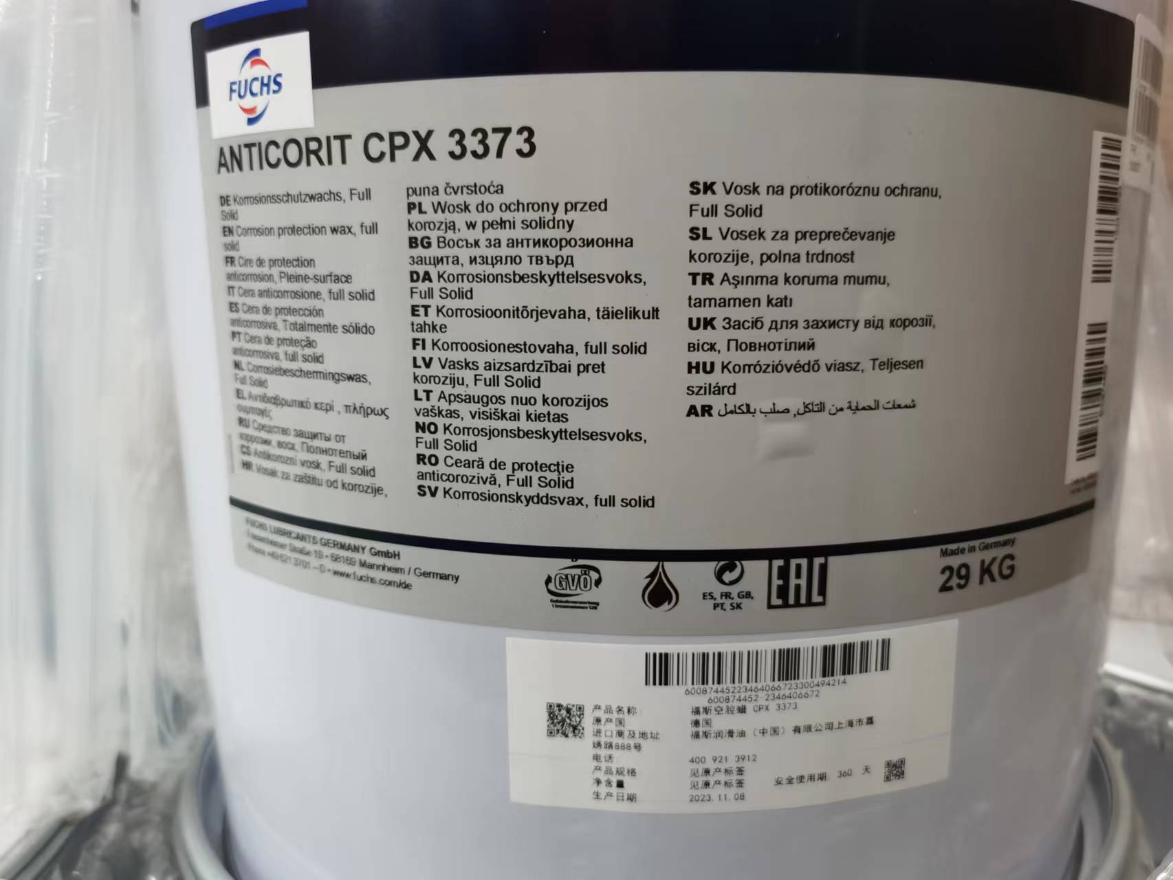 ANTICORIT CPX 3373可以随意移除合适的清洁剂。当保护膜干燥时氧化鼓需要正确关闭。