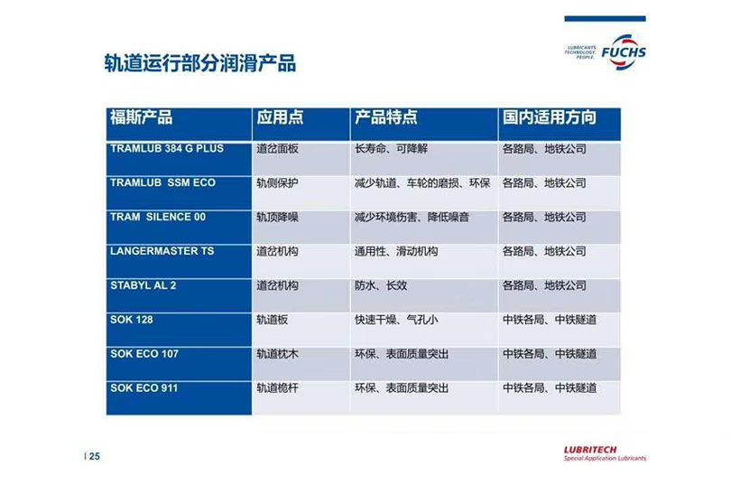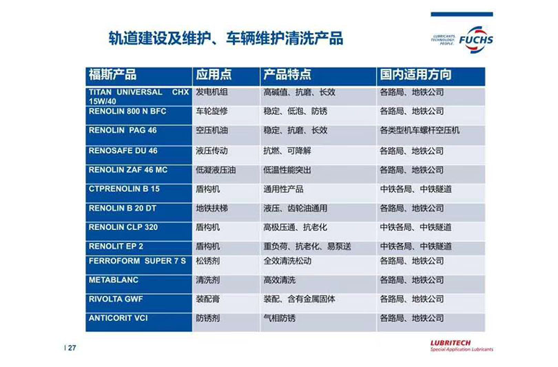 轨道交通润滑点对应福斯油品型号